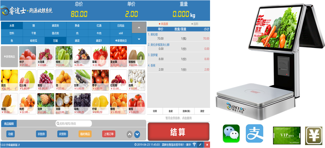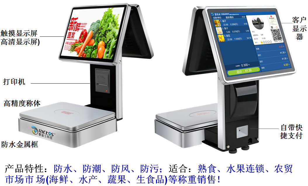 公司目前創(chuàng)新實(shí)現(xiàn)了收銀稱重一體化解決方案和智慧農(nóng)貿(mào)市場·溯源管理系統(tǒng),硬件、軟件與管理系統(tǒng)完美結(jié)合。適用于農(nóng)批、農(nóng)貿(mào)市場蔬菜、生鮮、水果、水產(chǎn)、肉類、熟食等稱重收銀一體化系統(tǒng);由于采用一體機(jī)設(shè)計(jì),智慧農(nóng)貿(mào)方案解決了傳統(tǒng)農(nóng)貿(mào)市場無法實(shí)現(xiàn)的信息化、智能化、可追溯的管理問題;使稱重、收銀、追溯更透明、公正、安全,讓顧客無后顧之憂。