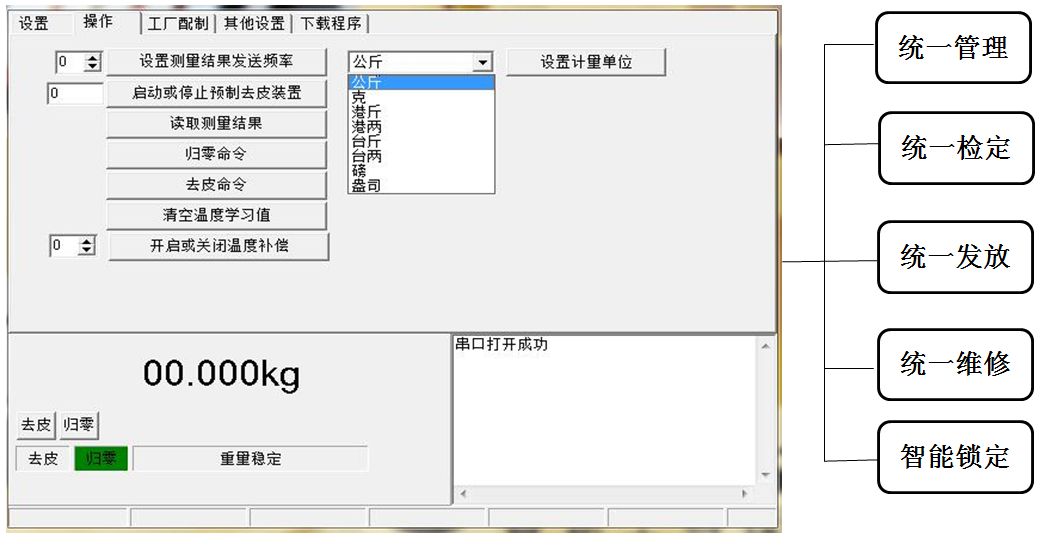采用科學(xué)及不可逆轉(zhuǎn)的衡器,在市場統(tǒng)一配發(fā)標(biāo)定溯源秤,杜絕缺斤短兩,結(jié)合互聯(lián)網(wǎng)應(yīng)用,通過技術(shù)手段實(shí)現(xiàn)防作弊及自動(dòng)報(bào)警功能。 將檢定、校準(zhǔn)、開機(jī)、關(guān)機(jī)、使用狀態(tài)等通過互聯(lián)網(wǎng)實(shí)現(xiàn)遠(yuǎn)程監(jiān)管。