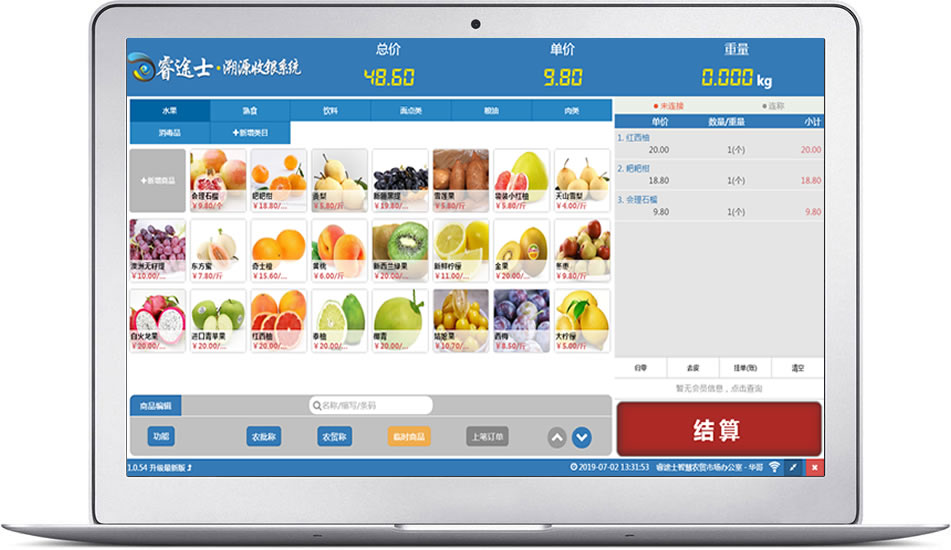 稱(chēng)重、收銀、打印、掃描一體化,點(diǎn)擊商品圖標(biāo)就是稱(chēng)重,告別傳統(tǒng)打條碼模式,所有商品稱(chēng)重完成后,自動(dòng)計(jì)算總價(jià),點(diǎn)擊收銀即完成整個(gè)過(guò)程。